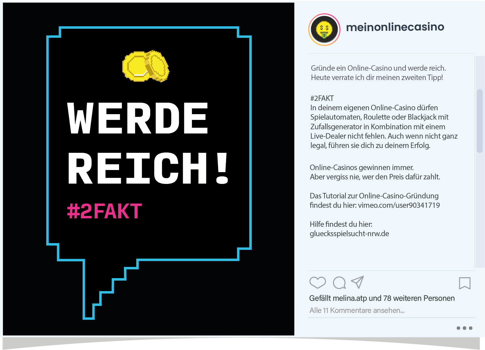 The goal is to get the target group to reflect on their gaming habits and think twice about betting real money in an online casino. To convey this message, the unrealistic idea of running their own online casino is highlighted.